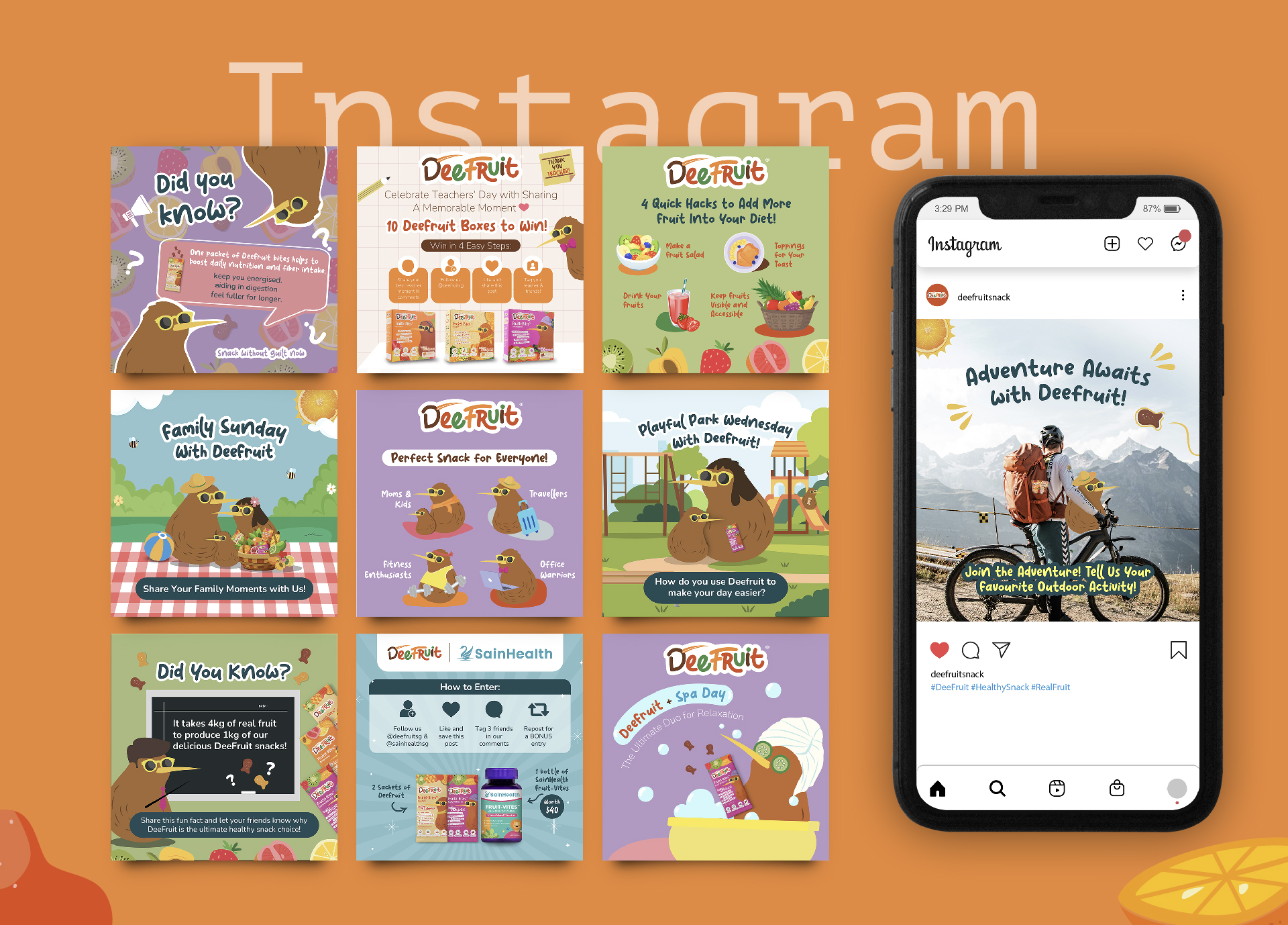 We worked with DeeFruit, a brand known for its 100% real fruit snacks, to boost their digital presence through creative ad campaigns and social media content. Our work focused on crafting vibrant, health-centric visuals and messaging that highlight the brand’s natural, wholesome appeal—helping to drive engagement and strengthen brand awareness across online platforms.